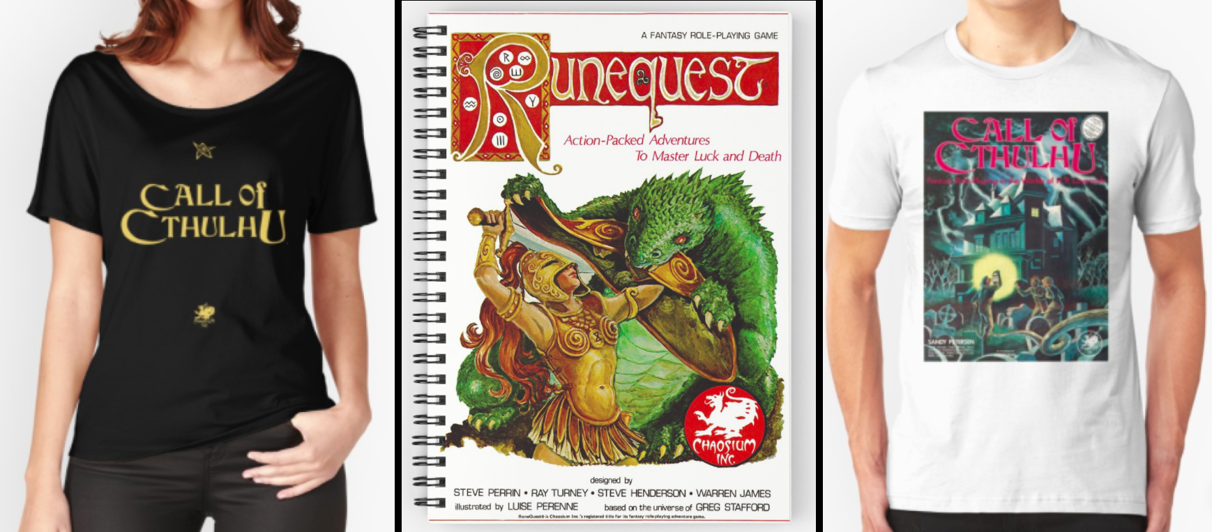 Use the code BONUSDAY to get 25% off Men's, Women's, Kids' and Babies' apparel, Device Cases, Wall Art, Stationary, Home Decor, Bags and more at the Chaosium merchandise store!.