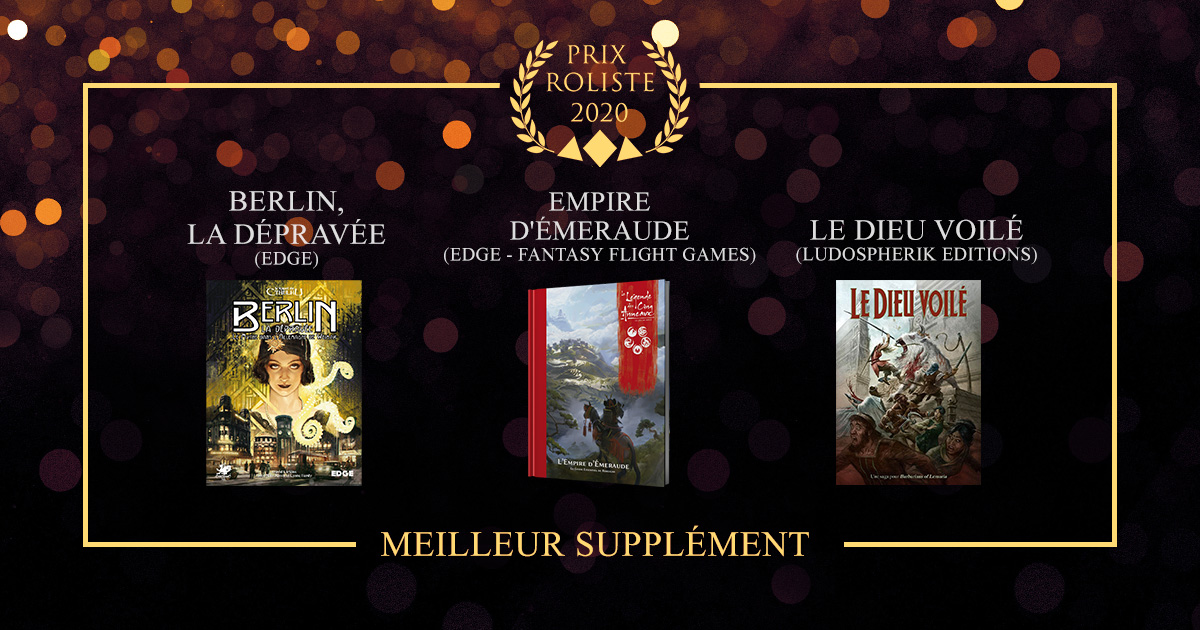 Chaosium has been nominated in several categories for the 2020 Prix Rôliste Prize. These awards, staged by Rôliste TV and judged by a jury of prominent figures in the French media and actors, are described as a French equivalent of the ENnies.