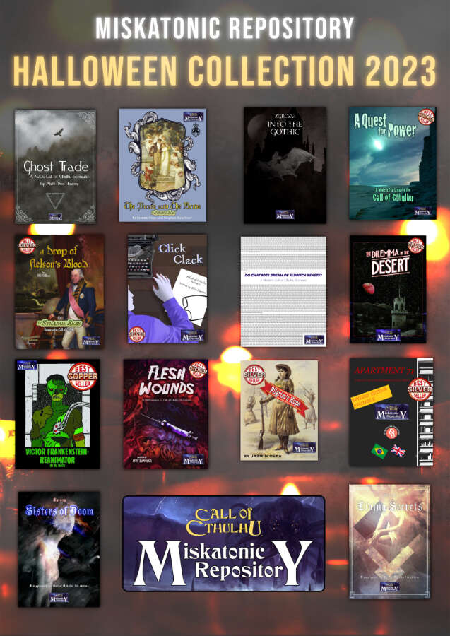 As with previous years, the Miskatonic Repository Halloween 2023 Collection contains scenarios by Repository authors old and new, sold at -60% off!