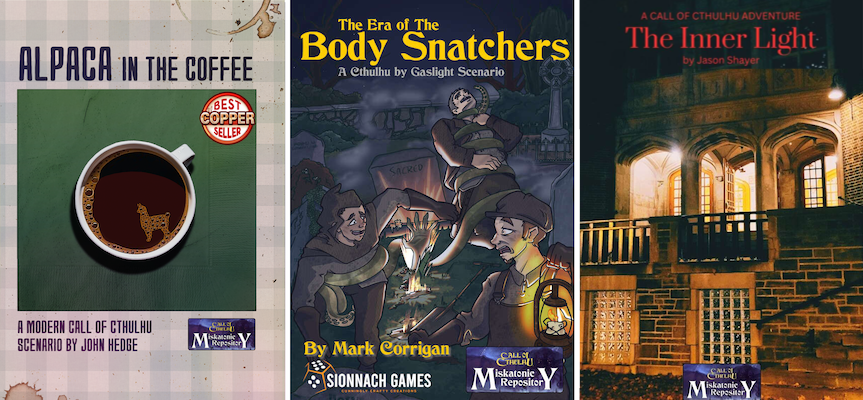 Are you a Keeper looking for new scenarios and story elements? A player looking for something mysterious to spark a character idea? Is your group looking for eerie ideas to use in your game? The Miskatonic Repository is where you can find —and create —self-published material for the Call of Cthulhu roleplaying game.