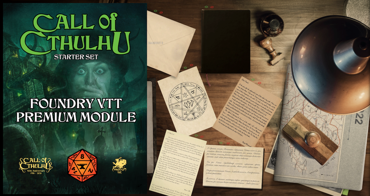 The Call of Cthulhu Starter Set on Foundry VTT contains everything you need to get started with the world’s best roleplaying game of horror, mystery and investigation! Call of Cthulhu has been specially enhanced for Foundry Virtual Tabletop, with Investigation Scenes, Character Sheet, Virtual Dice, and Dynamic Maps!