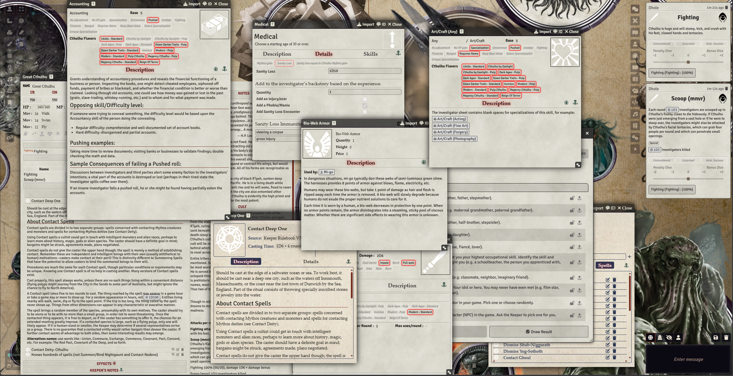 Call of Cthulhu has been specially enhanced for Foundry Virtual Tabletop, with: