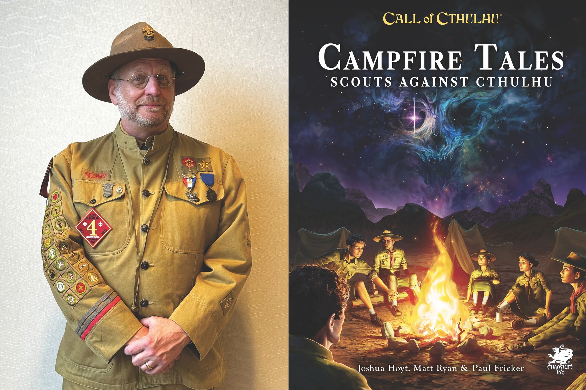 My start down both these paths happened at almost the same time. I was a cub scout in the 1970s and started playing RPGs just a few years later. I fell in love with Chaosium's games in 1979, and I joined a scout troop (Troop 205 Kalamazoo) in 1980. I became Troop 4's scoutmaster in 2014 and joined The Chaosium as its President in 2015.