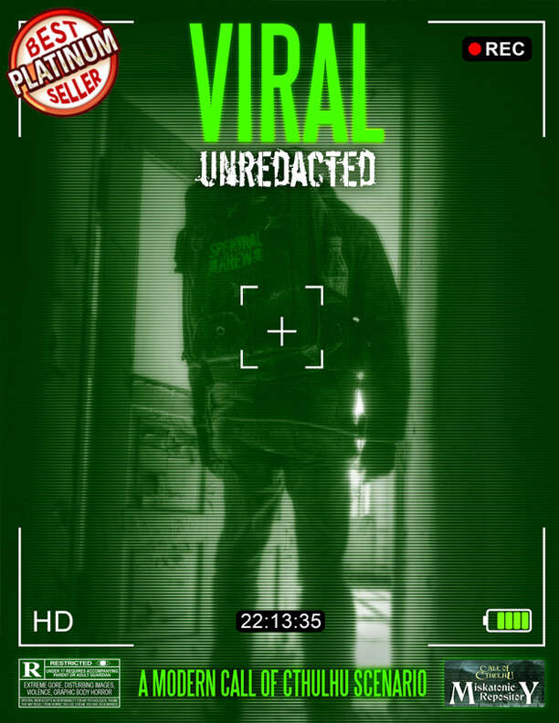 Viral: A Modern Day Call of Cthulhu Scenario is available in the Miskatonic Repository at DriveThruRPG in PDF and premium colour softcover and hardcover formats.