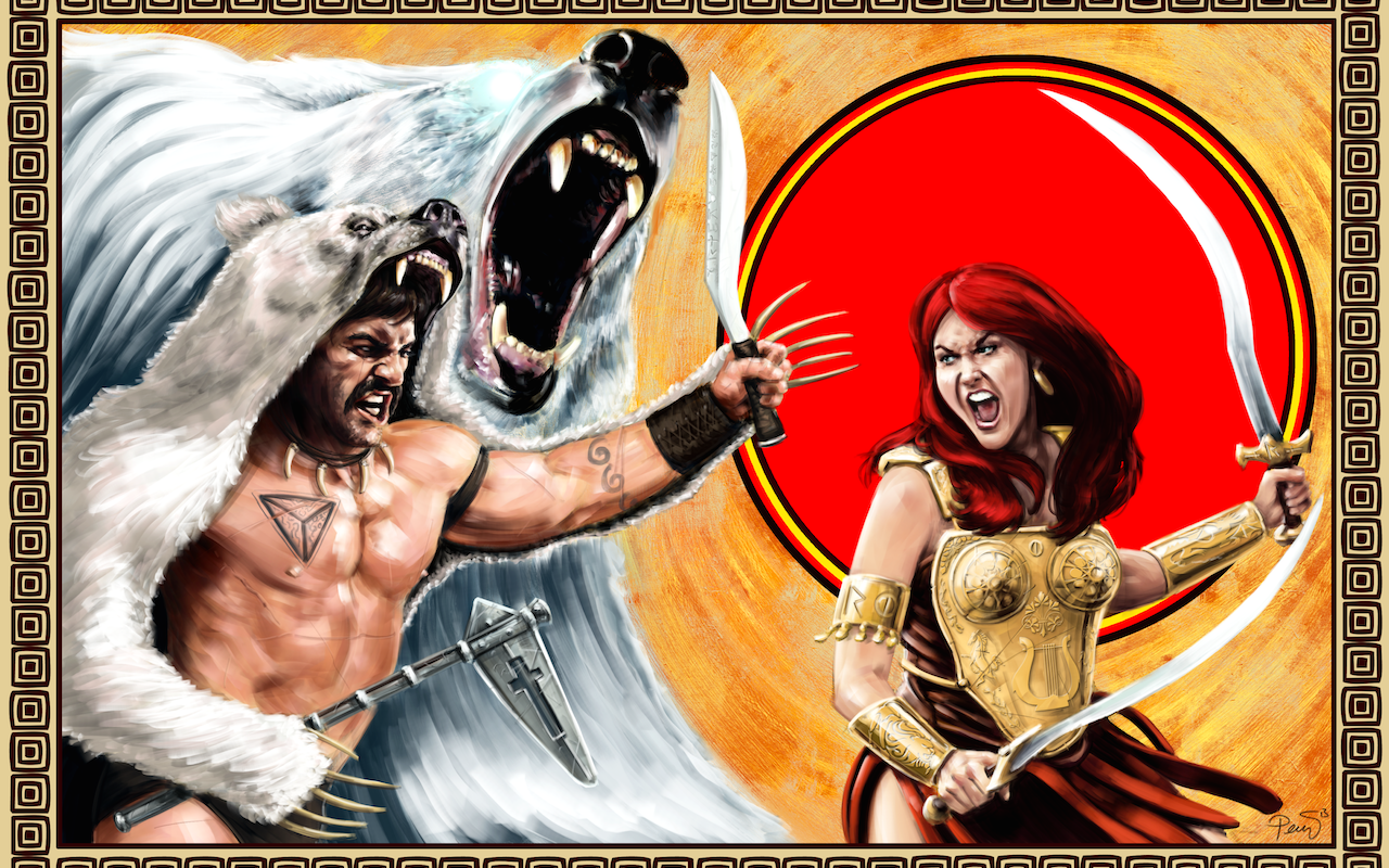 To celebrate Valentine's Day, here's Mike Perry's amazing Harrek and Jar El mural, as featured in The Guide to Glorantha, free for you to enjoy as wallpapers: